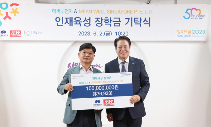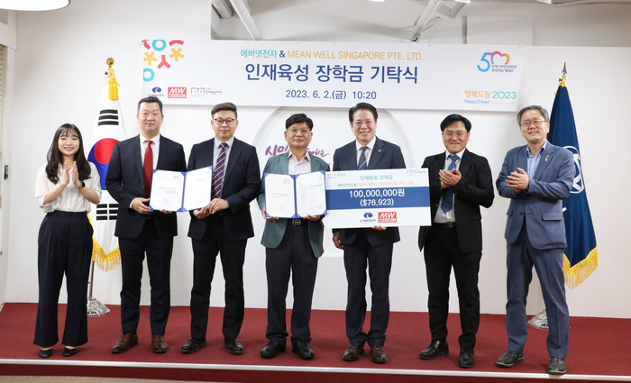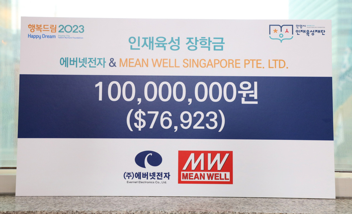 [중부일보] 안양시 인재육성재단은 최근 ㈜에버넷전자와 MEAN WELL SINGAPORE PTE. LTD로부터 1억 원의 인재육성 장학금을 기탁받았다고 7일 밝혔다.