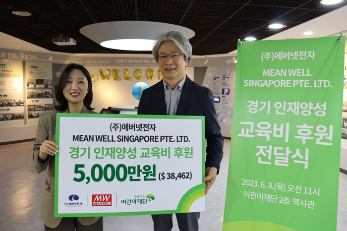 ㈜에버넷전자는 전원 공급장치 제조 기업 민웰과 한국 최초 공식 공급 계약을 체결한 대표 파트너로서 이번 전달식 역시 ㈜에버넷전자와 민웰의 오랜 신뢰관계를 바탕으로 지역 상생과 이웃들에게 더 나은 교육의 기회를 제공하기 위해 마련됐다. 전달된 후원금은 오는 7월부터 경기 지역 내 교육 소외계층 아동 20명에게 6개월간 교육비 및 교재비로 쓰일 예정이다.