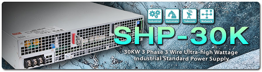 글로벌 표준 전원 공급 리더 MEAN WELL은 공식적으로 SHP-30K 시리즈를 출시했습니다. 이는 전 세계의 고객들로부터 높은 수요와 기대를 받고 있는 2U 랙 타입 고와트 표준 전원 공급장치입니다. SHP-30K 시리즈는 현재 세계에서 가장 높은 와트 수인 30KW AC/DC 단일 유닛 전원 공급기로, 3상 3선 AC 입력을 특징으로 하며 저전압 55V (<60V SELV) 및 고전압 (HVDC) 출력을 115V/230V/380V에서 제공합니다. 이 시리즈는 신재생에너지 및 첨단 산업 분야에서 에너지 저장 캐비닛, 에너지 저장 벽, 수소 동력, 풍력, 태양광, 전기 자동차 DC 고속 충전 시스템 및 기타 관련 응용 분야에 특히 적합합니다. 또한 산업 IT 빅데이터 서버, 데이터 센터용 무중단 전원 공급 (UPS) 시스템, 5G 기지국, 다양한 네트워킹 시스템 장비, 산업용 전해장비, 반도체 생산 장비, UV 레이저 커팅 등에 전원을 제공하는 데도 이상적입니다.