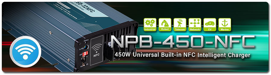 MEAN WELL은 최근 선보인 NPB-450 시리즈에, NPB-450-NFC 모델을 추가하였습니다. 이 모델은 휴대폰의 NFC 기능과 이질감 없이 통합되도록 설계하였습니다. 충전기에 AC 입력이 있든 없든, 사용자들은 MEAN WELL APP을 통해 근거리 감지를 통해 충전 파라미터를 조정할 수 있습니다.
