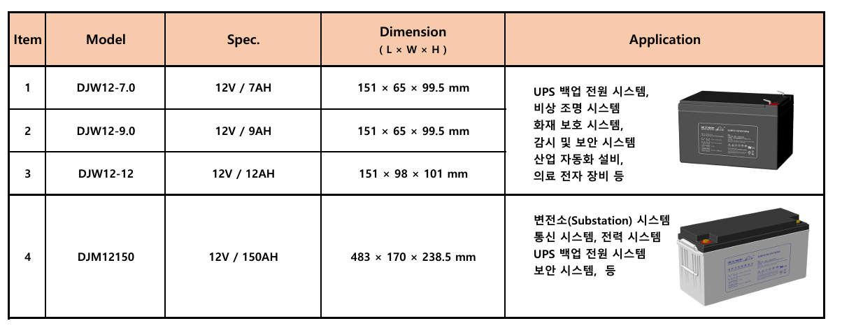 [신제품] DJW / DJM 시리즈: 12V/7~12AH & 150AH 밸브 조절식 밀폐형 납축 전지(VRLA)
