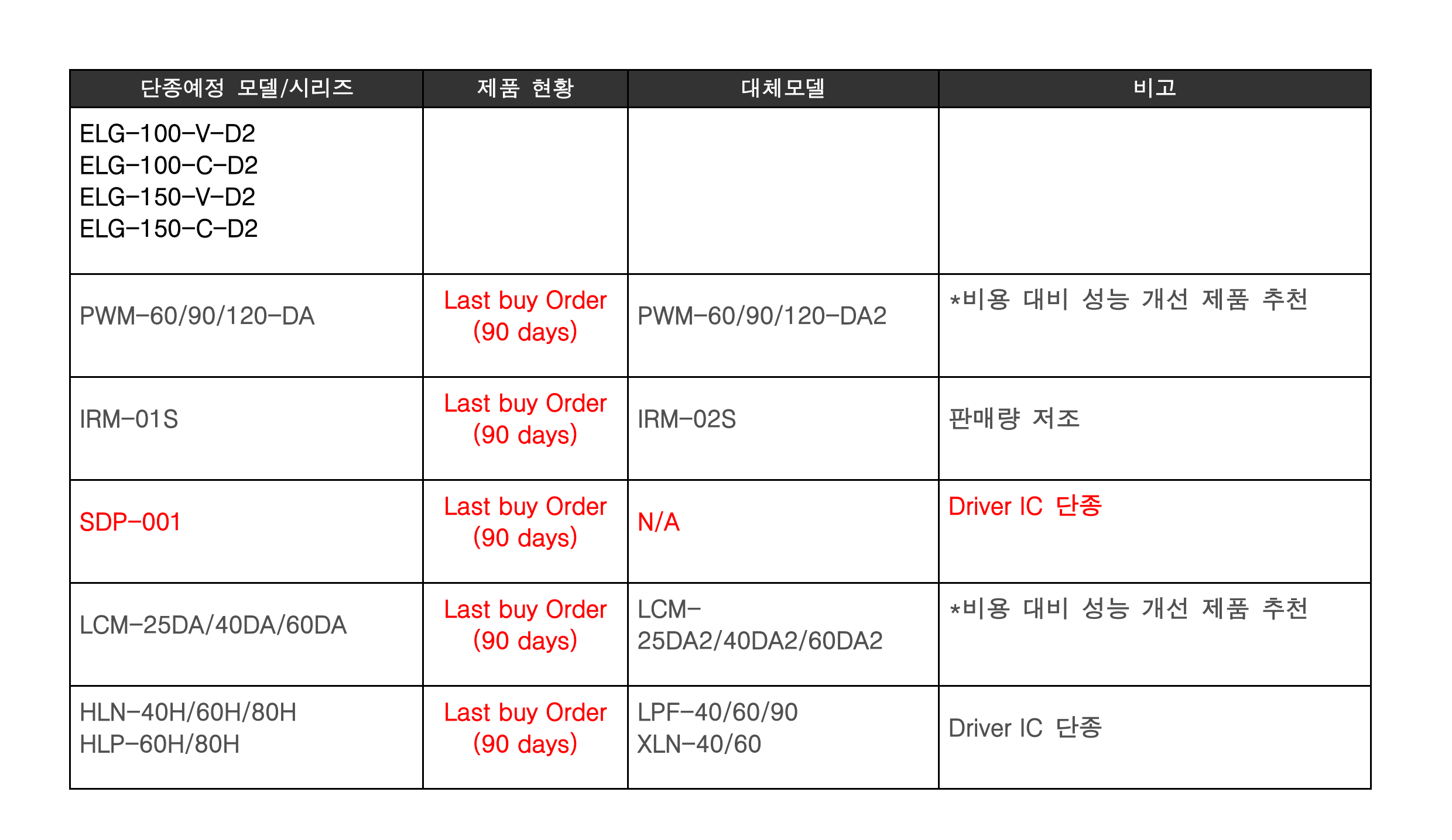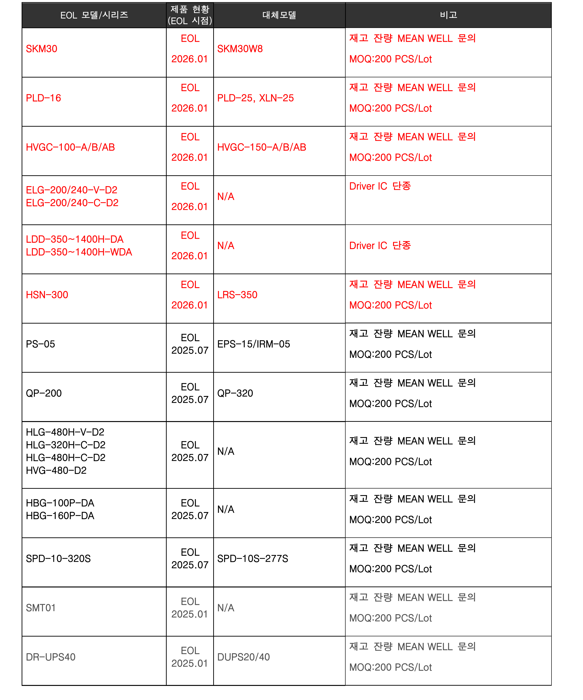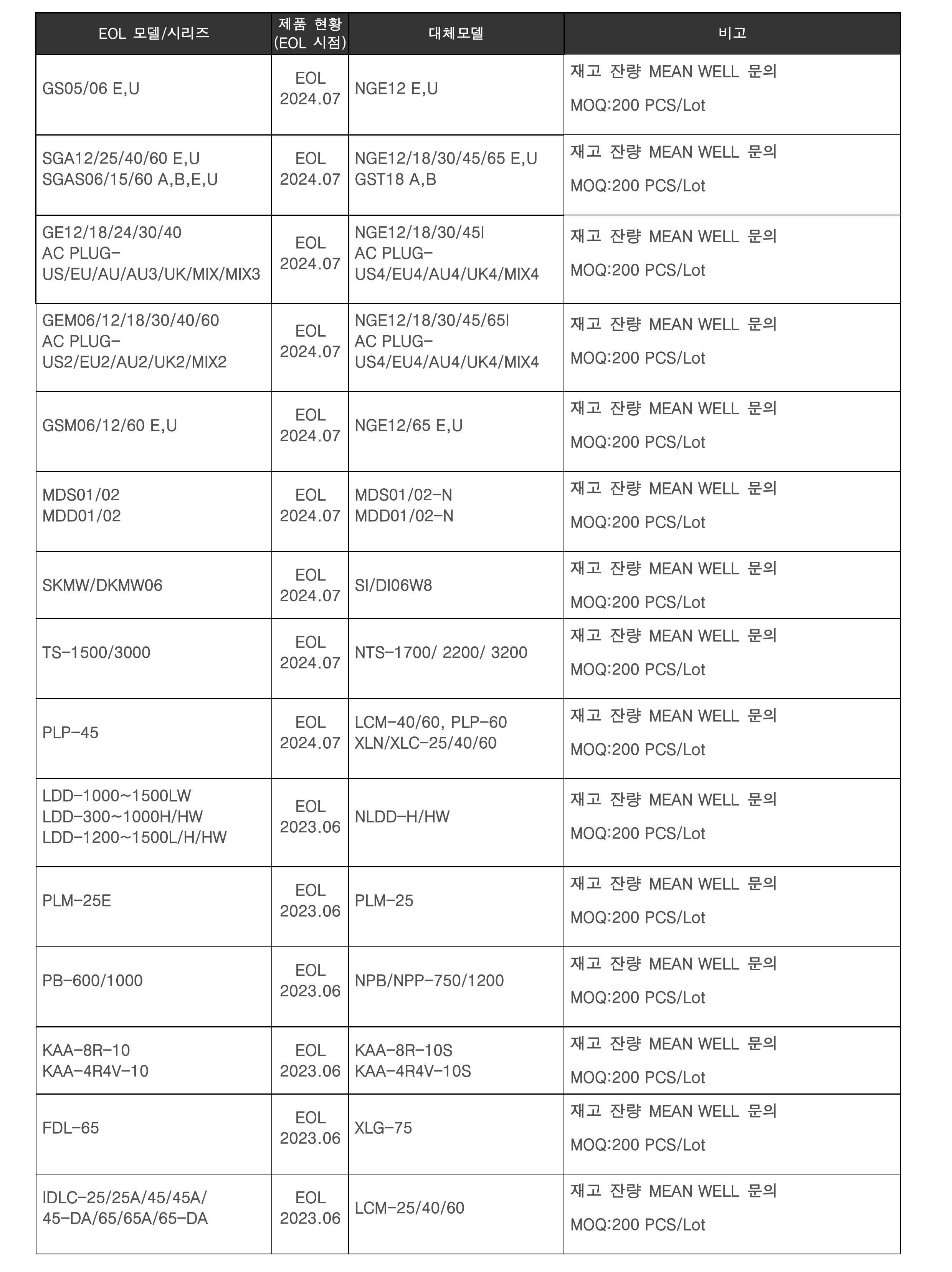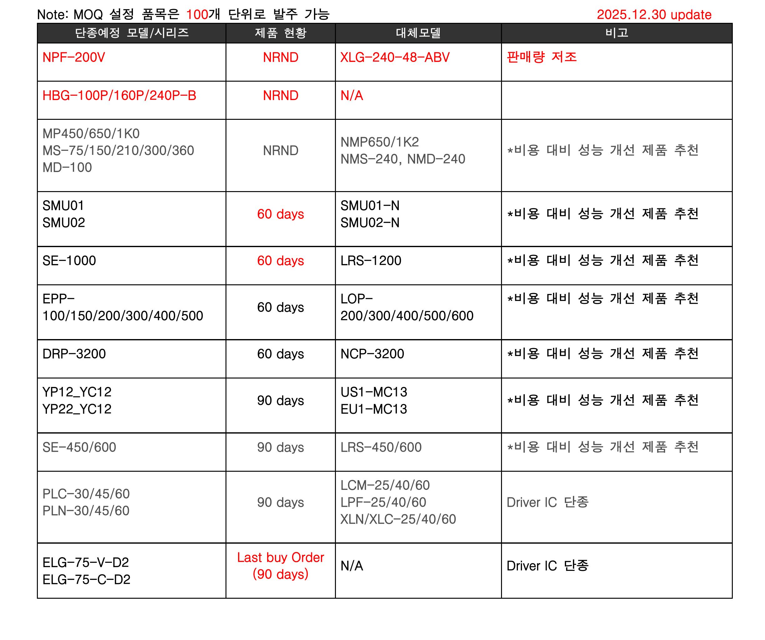 [제품 단종] 민웰 SMPS 단종 리스트 (2025.12.31 update)