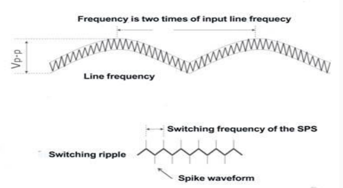 교류전원에서 변환되어 나온 직류전원에 상시 잔류하는 불필요한 작은 파형으로, 그 파형은 아래와 같습니다.