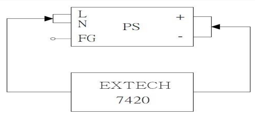 Hi-Pot 테스트 또는 전기 강도 테스트를 나타냅니다. 입력은 테스트 전 출력과 함께 단락되어야 합니다. 테스트는 1 분 동안 특정 고전압 값을 갖는 I/P-O/P, I/P-FG, O/P-FG 같은 특정 루프에서 진행됩니다. (AC 로 테스트 할 때 일반적인 누설 전류는 25mA 입니다)